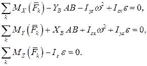 , которые возникают при движении твердого тела, называют динамическими реакциями. Уравнения для их определения получаем с учетом того, что приложенные внешние силы уравновешиваются статическими реакциями
