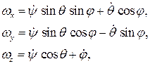 которые выражают проекции вектора угловой скорости вращения твердого тела на оси подвижной системы координат, скрепленные с телом через углы Эйлера и их производные по времени.