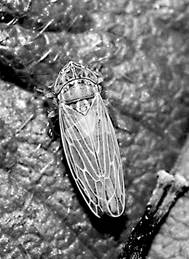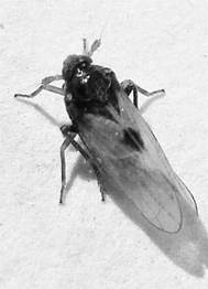 Взрослые особи шеститочечной цикадки имеют узкое, светло-желтое, с зеленоватым оттенком, тело, длиной 3,2 – 4,0 мм. Голова немного шире, чем переднеспинка, на голове шесть темных точек (рис. 4б). Зимуют яйца в прикорневой части стеблей и листьев озимой пшеницы, ржи, многолетних злаковых трав. В конце апреля – в начале мая с яиц отрождаются личинки. Они имеют пять возрастов, развитие продолжается 20-30 дней. В конце мая появляются взрослые особи. В посевах они держатся скрытно, при вспугивании делают большие прыжки и при высокой численности разлетаются в виде серебристого облачка. Самки первой генерации откладывают яйца в листовые влагалища или в ткань листьев злаков. При откладывании яиц самки надпиливают яйцекладом ткань растения, в результате чего молодые растения озимых становятся ослабленными. Эмбриональное развитие продолжается 20-40 дней. Личинки питаются соком листьев. Ко времени огрубления стеблей озимых злаков первая генерация мигрирует на яровые культуры, где самки откладывают яйца, и развивается вторая генерация. Наиболее многочисленны в период третьей декады июня и до начала августа. Осенью наблюдается миграция цикадок на дикие злаки, с появлением всходов озимых перелетают на них и откладывают яйца, которые зимуют.