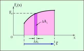 как функцию положения частицы на траектории (рис.1.6.2). Из рисунка видно, что элементарная работа численно равна площади выделенной полоски, а работа на всем пути – площади фигуры, образованной линией графика и осью