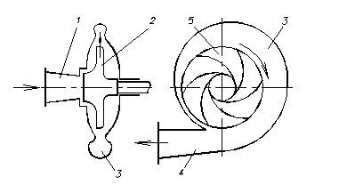 1 - входной патрубок; 2 - рабочее колесо; 3 – корпус (улитка);