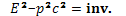 Ясно, что полная энергия E и импульс p частицы имеют разные значения в разных системах отсчета. Оказывается, однако, что существует величина — некоторая комбинация E и p, которая является инвариантной, т. е. имеет одно и то же значение в разных системах отсчета. Эта величина есть E2 - p2c2. Убедимся, что это так.