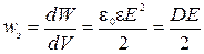 Анализируя последнее выражение, можем ввести объемную плотность энергии, т.е. энергии, заключенной в единице объема