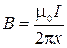 направлен по касательной к окружности, центр которой совпадает с током, а его модуль рассчитывается по формуле (2.8.8). Для расчета заметим, что