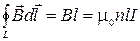Здесь l - длина стороны контура внутри соленоида. Число витков провода, пронизывающих любую поверхность, опирающуюся на выбранный контур равно nl. Тогда по теореме о циркуляции