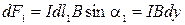 Эта сила называется силой Ампера. Для нахождения силы, действующей на проводник конечной длины нужно просуммировать силы, действующие на все его элементы
