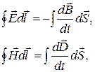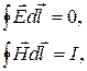 До сих пор мы рассматривали отдельные части этой теории. Теперь можно представить всю картину в виде системы фундаментальных уравнений электродинамики, называемыхуравнениями Максвелла внеподвижных средах. Этих уравнений четыре (мы уже познакомились с каждым из них в отдельности в предшествующих разделах, а сейчас просто соберем их все вместе). В интегральной форме система уравнений Максвелла имеет следующий вид: