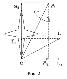 При этом ось вращения и момент импульса не обяза-тельно совпадают с осью гироскопа. Рассмотрим движение гироскопа с одной неподвижной точкой (т. О на рис. 2). Тогда по теореме Эйлера в каждый момент времени происходит вращение вокруг мгновенной оси проходящей через т. О. Разложим вектора