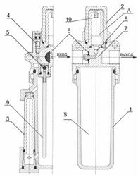 Лубликатор: 1- стакан; 2- ; 3 - 4 – дроссель; 5 – обратный клапан; 9 – трубопровод; 6- мембрана;7 - отверстие; 8- сопло; 9 трубка; 10- сопло
