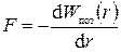 Итак, зная консервативную силу F(r), можно найти потенциальную энергию Wпот,(r). Рассмотрим теперь обратную задачу: зная потенциальную энергию Wпот,(r), определим величину силы F(r). Из табл. 1 легко увидеть, что сила равна производной от потенциальной энергии по расстоянию, взятой с обратным знаком: