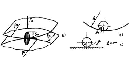 - приведенная кривизна поверхностей в месте контакта (Рисунок 50. а).