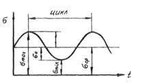 II режим создается нагрузками переменными по величине и постоянными по направлению. Напряжение изменяется по синусоидальному закону. Число циклов напряжений в секунду называют частотой нагружения (Рисунок 60).