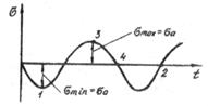 Наиболее опасным является симметричный (знакопеременный) σr = σ-1 Испытания проводят не менее, чем на 8... 10 образцах, каждый из которых подвергают действию переменных напряжений. Цель испытания определить величину σ-1 (Рисунок 64. б).