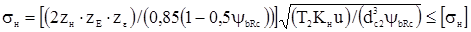 - формула для проверочного расчета стальных конических зубчатых колес на выносливость но контактным напряжениям.