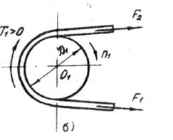 При передаче момента Т, происходит перераспределение натяжений в ветвях ремня: натяжение ведущей ветви увеличивается до