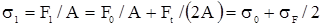 2) Рабочие напряжения в ведущей σ1 и ведомой σ2, ветвях ремня будут