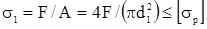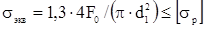 Сила F0 вызывает в сечении болт по внутреннему диаметру резьбы напряжения растяжения и кручения (К = 1,3 - коэффициент запаса тогда условия прочности болта но допускаемым напряжениям: