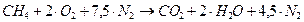 Якщо брати вагові відношення, то на 23,2 вагових частини кисню в повітрі приходиться 76,8 вагових частин азоту. Значить на 1 м3 кисню в повітрі приходиться 79/21=3,76 м3 азоту, або 1 м3 кисню знаходиться в 100/21=4,76 м3 повітря. Тому рівняння горіння газу в повітрі буде мати такий вигляд: