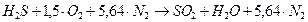 Але як відомо, спалювання газів відбувається не в чистому кисні, а в кисні повітря. В об’ємному відношенні в повітрі на 21 об'єм кисню приходиться 79 об'ємів азоту (якщо знехтувати іншими компонентами повітря – вуглекислим газом та інертними газами).