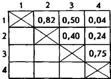 Анализ корреляционной матрицы показывает, что переменная 1 (характер) значимо коррелирует с переменными 2 и 3 (способности и потребности). Переменная 2 (способности) достоверно коррелирует с переменной 3 (потребности), а переменная 3 (потребности) — с переменной 4 (успеваемость). Фактически из шести имеющихся в матрице коэффициентов корреляции четыре являются достаточно высокими и, если предположить, что они определялись на совокупности испытуемых, превышающей 10 человек, — значимыми.