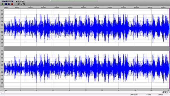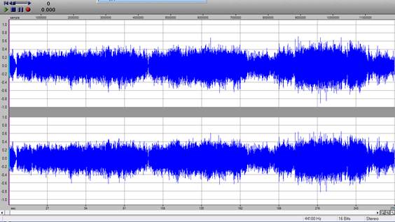 Диапазон – это интервал между доступным человеку самым низким и самым высоким голосом. Если для речи человека характерны как высокие, так и низкие тона, то можно говорить о высоте диапазона его голоса, многотональности и эмоциональности речи. Если человеку доступна одна тональность (высокая или низкая), то можно утверждать, что диапазон его голоса низкий. Указанная особенность речи может быть измерена любой программой, воспроизводящей аудиозаписи (QuickAudio, Adobe Audition) и изображена графически (Рис. 2, 3).