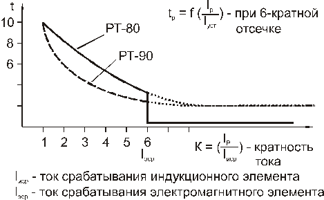 Реле состоит из двух элементов индукционного с ограниченно зависимой характеристикой времени и электромагнитного – действующего мгновенно и называемого отсечкой.