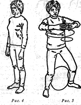 Существует несколько базовых форм для вертикального положения. Можно, например, просто дышать стоя, в расслабленном состоянии, как это показано на рис. 4. Дыхание для этого и всех других упражнений, как мы и условились, полное ритмичное. Упражнение выполняется босиком, что, впрочем, относится к любым дыхательным упражнениям. Но более эффективна поза стоя с энергетической составляющей или как ее называют форма трех кругов (рис. 5).