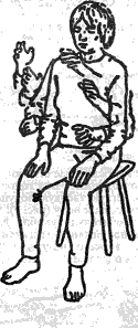 При выполнении дыхательных упражнений следует учитывать, что полное ритмичное дыхание может вызывать побочные явления, особенно у людей избыточно раздражительных или страдающих повышенным кровяным давлением. Им рекомендуется дыхание сидя с движением рук (рис. 7 и 8). Это исключительно эффективное успокаивающее упражнение. Поэтому при малейших признаках раздражительности прекращайте все другие упражнения и переходите на это.