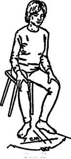 Сядьте на поставленный прямо перед стеной стул спиной к свету так, чтобы ноги были согнуты в коленях под прямым углом. Пятки расставьте на ширину 7 сантиметров.