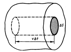 (рис. 9), учитывают, что число молекул, способных за время Dt достигнуть площадки DS соответствует 1/6 части всех N молекул, содержащихся в объеме выделенного цилиндра (
