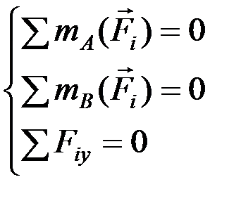 Теорема.Для равновесия произвольной плоской системы сил необходимо и достаточно, чтобы сумма моментов всех сил относительно двух произвольных точек равнялась нулю и чтобы сумма проекций всех сил на произвольную ось, не перпендикулярную прямой, соединяющей эти точки, равнялась нулю: