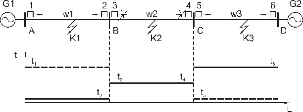 Из анализа действия защит при КЗ в точках К1–К3 следует, что направленность действия требуется не на всех защитах. Так как выдержка времени защиты 3 больше выдержки времени защиты 2 (t3>t2), то селективность действия защиты 3 при КЗ на линии w1 может быть обеспечена без органа направления, то же относится и к защите 4.