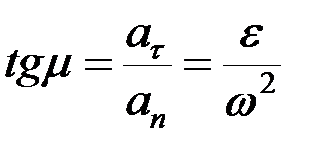 Отклонение вектора полного ускорения от радиуса определяется углом