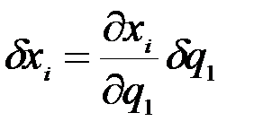 Другой пример. Пусть система материальных точек М1, М2, М3, … Мп имеет k степеней свободы. Обозначим ее обобщенные координаты q1, q2, … qk. Возьмем декартовы оси x, y, z и обозначим координаты точки Мi через