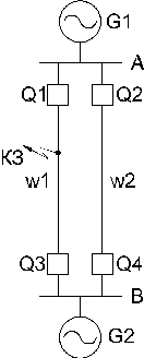 1. Если при КЗ на линии w1 выключатель Q1 отключится раньше Q3 (см. рис. 8.3.10.), то реле мощности защиты подстанции А разрешит защите отключить и выключатель Q2. Такое, неправильное действие защиты и предотвращают блок-контакты.
