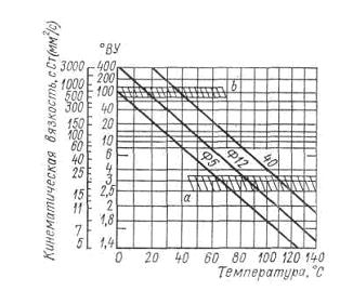 а – значения вязкости, необходимые для качественного распыливания мазута