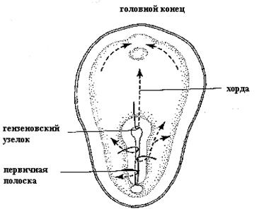 Рис. 109. Перемещение клеток при гаструляции.