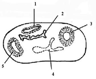 | Рис.123. Поперечный разрез пуповины (схема): 1- пупочная вена; 2 – аллантоис; 3,5 - пупочные артерии; 4 – желточный мешок. |