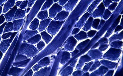 Фото 6. Поперечно-полосатая мышечная ткань языка. Окраска: железный гематоксилин по Гейденгайну.