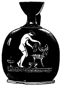 Около середины века получили широкое распространение лекифы с росписью по белому фону, служившие для культовых целей (связанных с погребением умерших). В них нередко рисунок достигал особенной непринужденной легкости (подчас переходившей в небрежность); он наносился черным лаком, обрисовывая основные линии фигуры, и после обжига раскрашивался (почему иногда из-за стершейся краски фигуры выглядят обнаженными). Образцом мастерского рисунка на белом фоне является изображение девушки, приносящей дары умершему, на аттическом лекифе Бостонского музея.
