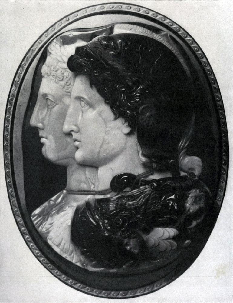 235. Камея Гонзага с изображением Птолемея Филадельфа и Арсинои. Сердолик. Первая половина 3 в. до н. э. Ленинград. Эрмитаж.