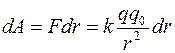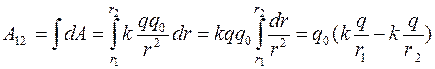 Работа, совершаемая силами электростатического поля при перемещении заряда q0из точки 1 в точку 2, выражается следующим образом: