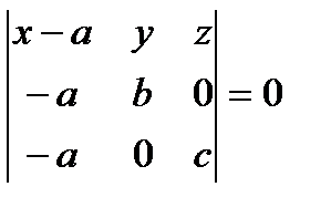Тогда вектора AM (x- a, y, z), AB(-a, b, 0), AC(-a, 0, c) компланарны. Отсюда следует, что AM·AB·AC= 0.
