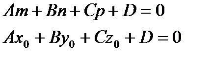 N•l = 0, координаты т. М0 удовлетворяют уравнению плоскости.