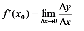 Если существует предел отношения приращения функции к приращению аргумента, когда последний стремится к нулю, то он называется производной функции f(x) в точке x0.