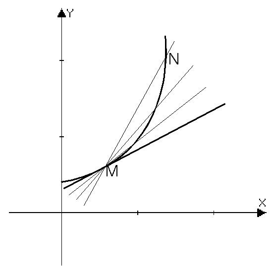 в точке M0(x0,y0) называется предельное положение секущей M0N, когда точка N стремится к точке M0 по графику.