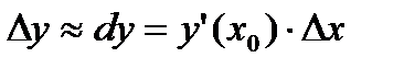 Из рисунка видно, что приращение функции Dy и дифференциал dy связаны приближенным равенством Dy » dy. Поэтому с помощью дифференциала можно вычислять значения функции