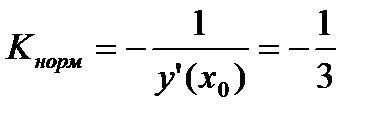 Так как нормаль перпендикулярна к касательной, то угловой коэффициент нормали: