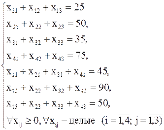 | Потребности, шт | 45+90+50=25+50+35+75 185=185 |