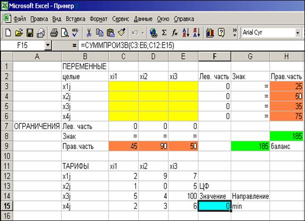 Двухиндексные задачи ЛП вводятся и решаются в Excel аналогично одноиндексным задачам. Специфика ввода условия двухиндексной задачи ЛП состоит в удобстве матричного задания переменных задачи и коэффициентов ЦФ.